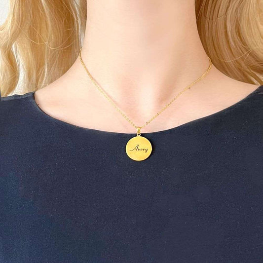 Custom Photo Engraved Necklace Round Disc Sterling Silver